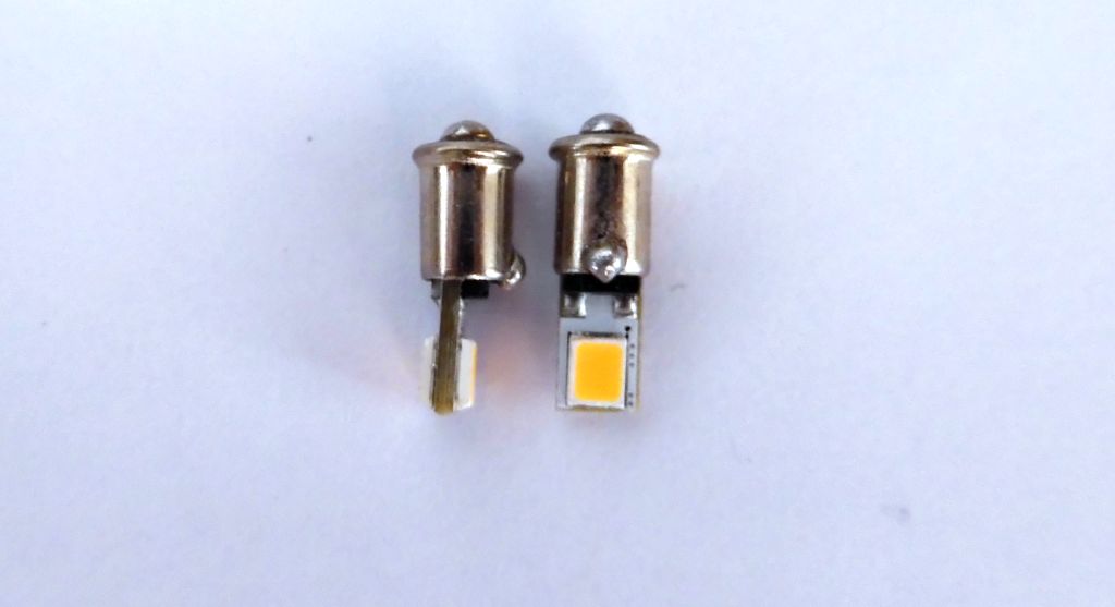 4 Stück 4mm LED Glühbirnchen Ersatz für ältere Loks. Speziell für das Beleuchten der Lichtleiter. Durch die seitlich angebrachten LEDS kann direkt in den Lichtleiter gestrahlt werden. Max. 16 V Gleich- oder Wechselstrom,